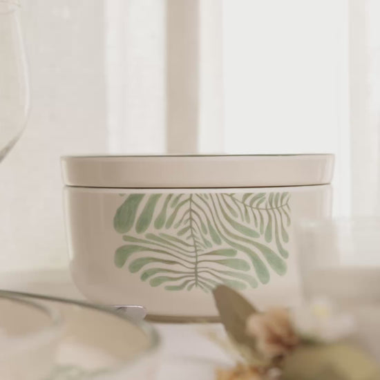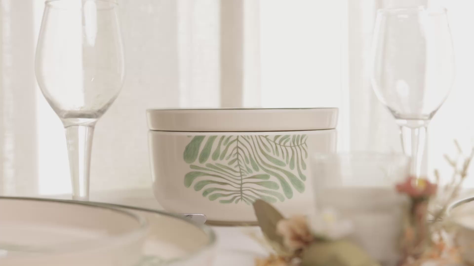 Made from durable, food-grade melamine, each piece features hand-drawn green illustrations on a soft beige base, inspired by Comporta’s coastal charm. Lightweight and shatter-resistant, it’s perfect for both indoor and outdoor dining. Whether for everyday use or special occasions, Comporta brings a touch of timeless beauty to the table